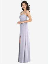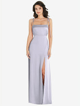 【NEW】【STYLE: 8214】スキニー タイショルダー サテン マキシ ドレス 前面 スリット【COLOR: Silver Dove】【SIZE: 00-30W】