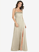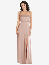 【NEW】【STYLE: 8214】スキニー タイショルダー サテン マキシ ドレス 前面 スリット【COLOR: Toasted Sugar】【SIZE: 00-30W】