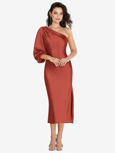 【NEW】【STYLE: 8215】ワンショルダー パフ スリーブ MIDI バイアス ドレス サイド スリット【COLOR: Amber Sunset】【SIZE: 00-30W】