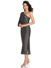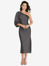 【NEW】【STYLE: 8215】ワンショルダー パフ スリーブ MIDI バイアス ドレス サイド スリット【COLOR: Caviar Gray】【SIZE: 00-30W】