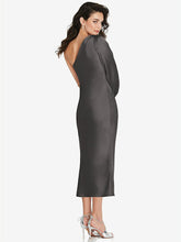 ワンショルダーシルエットと渦巻く司教の袖のペアリングであるこのLux Charmeuseバイアスドレスは、クラシックな優雅さを備えたモダンな外観です。結婚式や洗練された集まりに最適なフォーマルな外観であるこのミディドレスは、ダンスにぴったりのサイドスリットのあるお茶の葉の裾を誇っています。