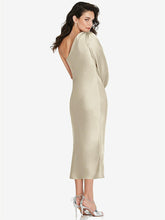 ワンショルダーシルエットと渦巻く司教の袖のペアリングであるこのLux Charmeuseバイアスドレスは、クラシックな優雅さを備えたモダンな外観です。結婚式や洗練された集まりに最適なフォーマルな外観であるこのミディドレスは、ダンスにぴったりのサイドスリットのあるお茶の葉の裾を誇っています。