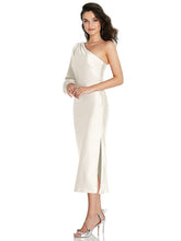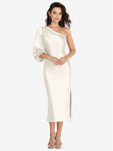 【NEW】【STYLE: 8215】ワンショルダー パフ スリーブ MIDI バイアス ドレス サイド スリット【COLOR: Ivory】【SIZE: 00-30W】