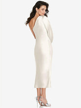 ワンショルダーシルエットと渦巻く司教の袖のペアリングであるこのLux Charmeuseバイアスドレスは、クラシックな優雅さを備えたモダンな外観です。結婚式や洗練された集まりに最適なフォーマルな外観であるこのミディドレスは、ダンスにぴったりのサイドスリットのあるお茶の葉の裾を誇っています。