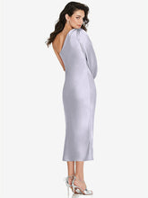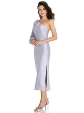 【NEW】【STYLE: 8215】ワンショルダー パフ スリーブ MIDI バイアス ドレス サイド スリット【COLOR: Silver Dove】【SIZE: 00-30W】