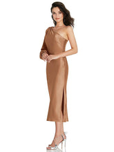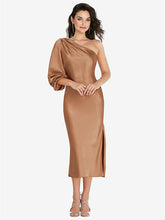 【NEW】【STYLE: 8215】ワンショルダー パフ スリーブ MIDI バイアス ドレス サイド スリット【COLOR: Toffee】【SIZE: 00-30W】
