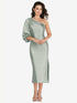 【NEW】【STYLE: 8215】ワンショルダー パフ スリーブ MIDI バイアス ドレス サイド スリット【COLOR: Willow Green】【SIZE: 00-30W】