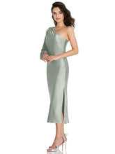 ワンショルダーシルエットと渦巻く司教の袖のペアリングであるこのLux Charmeuseバイアスドレスは、クラシックな優雅さを備えたモダンな外観です。結婚式や洗練された集まりに最適なフォーマルな外観であるこのミディドレスは、ダンスにぴったりのサイドスリットのあるお茶の葉の裾を誇っています。