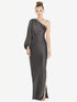 【NEW】【STYLE: 8216】ワンショルダー パフ スリーブ マキシ バイアス ドレス サイド スリット【COLOR: Caviar Gray】【SIZE: 00-30W】