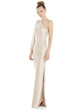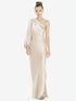 【NEW】【STYLE: 8216】ワンショルダー パフ スリーブ マキシ バイアス ドレス サイド スリット【COLOR: Oat】【SIZE: 00-30W】