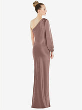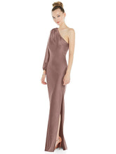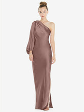 【NEW】【STYLE: 8216】ワンショルダー パフ スリーブ マキシ バイアス ドレス サイド スリット【COLOR: Sienna】【SIZE: 00-30W】