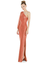 【NEW】【STYLE: 8216】ワンショルダー パフ スリーブ マキシ バイアス ドレス サイド スリット【COLOR: Terracotta Copper】【SIZE: 00-30W】