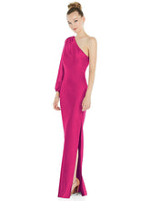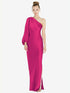 【NEW】【STYLE: 8216】ワンショルダー パフ スリーブ マキシ バイアス ドレス サイド スリット【COLOR: Think Pink】【SIZE: 00-30W】