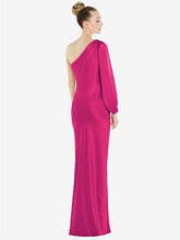 少し陰と陽エネルギーは、このフォーマルなルクスのcharmeuseのガウンに遊び心のあるオーラを貸します。ドラマチックなワンショルダーシルエットは、渦巻く司教の袖と、床に落ちるマキシスカートとペアになっており、非常に柔らかい外観になります。