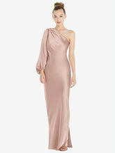 【NEW】【STYLE: 8216】ワンショルダー パフ スリーブ マキシ バイアス ドレス サイド スリット【COLOR: Toasted Sugar】【SIZE: 00-30W】