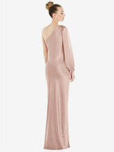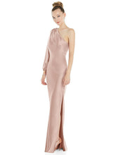 少し陰と陽エネルギーは、このフォーマルなルクスのcharmeuseのガウンに遊び心のあるオーラを貸します。ドラマチックなワンショルダーシルエットは、渦巻く司教の袖と、床に落ちるマキシスカートとペアになっており、非常に柔らかい外観になります。