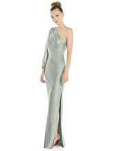 少し陰と陽エネルギーは、このフォーマルなルクスのcharmeuseのガウンに遊び心のあるオーラを貸します。ドラマチックなワンショルダーシルエットは、渦巻く司教の袖と、床に落ちるマキシスカートとペアになっており、非常に柔らかい外観になります。