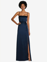 すべてが弓で縛られているこのLux Charmeuseのガウンは、花嫁介添人にとって美しく機能するシンプルな洗練された外観です。繊細で細長い肩のストラップは、腰に調整可能であり、柔軟なネクタイバックウエストがマキシスカートに流れ込み、サイドがスリットされます。