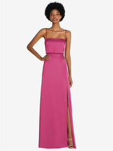 すべてが弓で縛られているこのLux Charmeuseのガウンは、花嫁介添人にとって美しく機能するシンプルな洗練された外観です。繊細で細長い肩のストラップは、腰に調整可能であり、柔軟なネクタイバックウエストがマキシスカートに流れ込み、サイドがスリットされます。