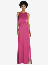 流れるエネルギーは、このエレガントなlux charmeuse maxiドレスをモダンな感性で満たします。高いネックラインとブルーソンボディスは、修正されたサークルスカートと完璧にペアになります。腰は、このガウンを上に置く細身で調整可能なストラップと弓のアクセントを明らかにします。