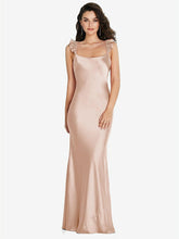 きらめくlux charmeuseは、この美しいフォーマルなバイアスマキシガウンで水のように流れます。繊細に波立たせた肩は、テクスチャのコントラストのヒントを追加しますが、低い、オープンバックリソーゼの洗練されたセクシーな外観は、次の夜のそばにぴったりです。