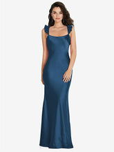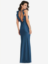 【NEW】【STYLE: 8219】フリル トリミング オープンバック マキシ スリップ ドレス【COLOR: Dusk Blue】【SIZE: 00-30W】