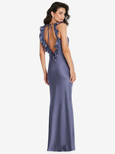 【NEW】【STYLE: 8219】フリル トリミング オープンバック マキシ スリップ ドレス【COLOR: French Blue】【SIZE: 00-30W】