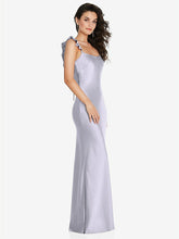 きらめくlux charmeuseは、この美しいフォーマルなバイアスマキシガウンで水のように流れます。繊細に波立たせた肩は、テクスチャのコントラストのヒントを追加しますが、低い、オープンバックリソーゼの洗練されたセクシーな外観は、次の夜のそばにぴったりです。