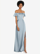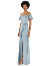 【NEW】【STYLE: 8227】ストレートネック フリル オフショルダー サテン マキシ ドレス【COLOR: Mist】【SIZE: 00-30W】