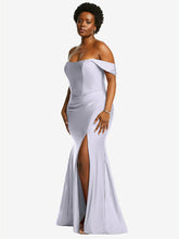 【NEW】【STYLE: CS101】オフサルダー コルセット ストレッチ サテン 人魚 ドレス わずかな 電車【COLOR: Silver Dove】【SIZE: 00-30W】