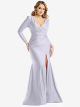 【NEW】【STYLE: CS102】長い 袖 ドレープ ラップ ストレッチ サテン 人魚 ドレス わずかな 電車【COLOR: Silver Dove】【SIZE: 00-30W】