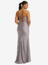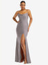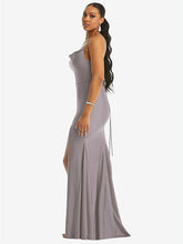 【NEW】【STYLE: CS105】カウルネック オープン ネクタイバック ストレッチ サテン 人魚 ドレス わずかな 電車【COLOR: Cashmere Gray】【SIZE: 00-30W】