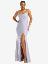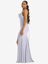 【NEW】【STYLE: CS105】カウルネック オープン ネクタイバック ストレッチ サテン 人魚 ドレス わずかな 電車【COLOR: Silver Dove】【SIZE: 00-30W】
