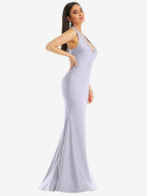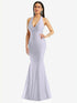 【NEW】【STYLE: CS106】プランジ ネックライン カットアウト 低 背面 ストレッチ サテン 人魚 ドレス【COLOR: Silver Dove】【SIZE: 00-30W】
