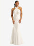 【NEW】【STYLE: CS112】クロス クロス ホルター オープンバック ストレッチ サテン 人魚 ドレス【COLOR: Ivory】【SIZE: 00-30W】