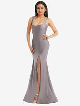 【NEW】【STYLE: CS113】正方形 首 ストレッチ サテン 人魚 ドレス わずかな 電車【COLOR: Cashmere Gray】【SIZE: 00-30W】