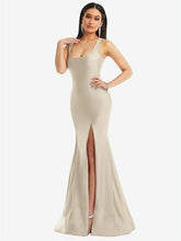 【NEW】【STYLE: CS113】正方形 首 ストレッチ サテン 人魚 ドレス わずかな 電車【COLOR: Champagne】【SIZE: 00-30W】