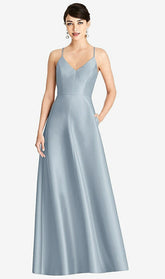 【NEW】【STYLE: D750】Vネック フル スカート サテン マキシ ドレス【COLOR: Mist】【SIZE: 00-30W】