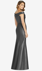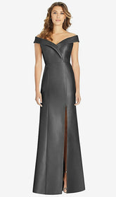 【NEW】【STYLE: D760】オフショルダー カフ トランペット ガウン 前面 スリット【COLOR: Pewter】【SIZE: 00-30W】