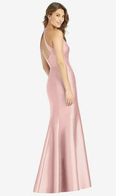【NEW】【STYLE: D761】Vネック ホルター サテン トランペット ガウン【COLOR: Rose - PANTONE Rose Quartz】【SIZE: 00-30W】
