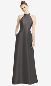 【NEW】【STYLE: D772】ハイネック カットアウト サテン ドレス ポケット付き【COLOR: Caviar Gray】【SIZE: 00-30W】