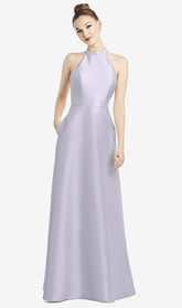 【NEW】【STYLE: D772】ハイネック カットアウト サテン ドレス ポケット付き【COLOR: Silver Dove】【SIZE: 00-30W】