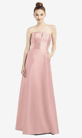 【NEW】【STYLE: D774】ストラップレス ノッチ サテン ガウン ポケット付き【COLOR: Rose - PANTONE Rose Quartz】【SIZE: 00-30W】