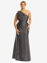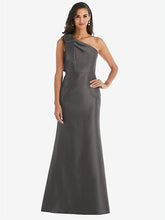 【NEW】【STYLE: D794】弓 ワンショルダー サテン トランペット ガウン【COLOR: Caviar Gray】【SIZE: 00-30W】