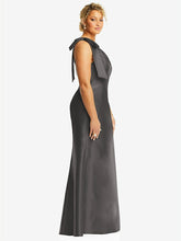 非対称でシックなこのフルレングスのマキシドレスは、滑らかなサテンツイルで作られており、特別な機会にフォーマルなタッチを提供します。堂々とした弓のディテールを備えた片方の肩のボディスが明らかになっているため、このサテンのツイルドレスはフレアトランペットスカートに流れます。