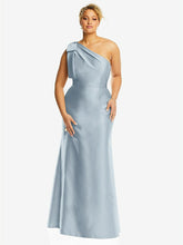 【NEW】【STYLE: D794】弓 ワンショルダー サテン トランペット ガウン【COLOR: Mist】【SIZE: 00-30W】