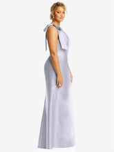 非対称でシックなこのフルレングスのマキシドレスは、滑らかなサテンツイルで作られており、特別な機会にフォーマルなタッチを提供します。堂々とした弓のディテールを備えた片方の肩のボディスが明らかになっているため、このサテンのツイルドレスはフレアトランペットスカートに流れます。