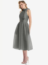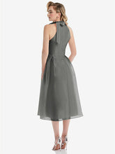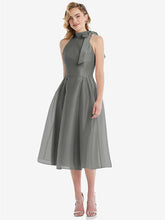 【NEW】【STYLE: D833】スカーフタイ ハイネック ホルター オルガンディ ミディ ドレス【COLOR: Charcoal Gray】【SIZE: 00-30W】