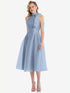 【NEW】【STYLE: D833】スカーフタイ ハイネック ホルター オルガンディ ミディ ドレス【COLOR: Cloudy】【SIZE: 00-30W】