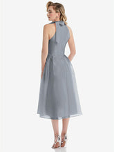 【NEW】【STYLE: D833】スカーフタイ ハイネック ホルター オルガンディ ミディ ドレス【COLOR: Platinum】【SIZE: 00-30W】